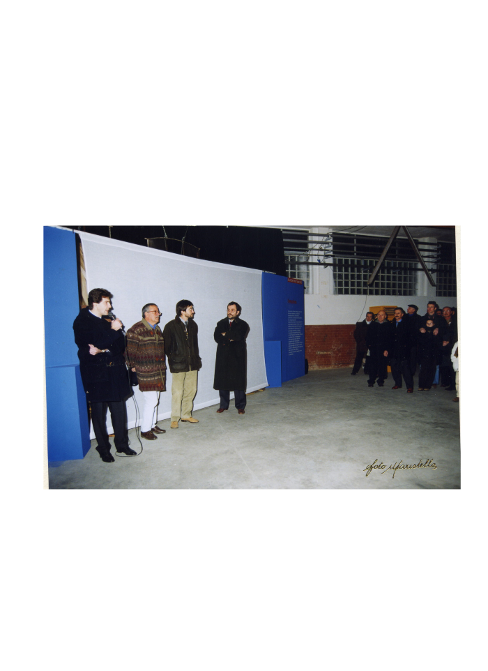 Inaugurazione della mostra, primo piano sul pubblico. Fra gli astanti si riconosce Marcello Vaudano, autore del volume L'acqua è arrivata fino a qui, parte del "Progetto Aqua 1998"