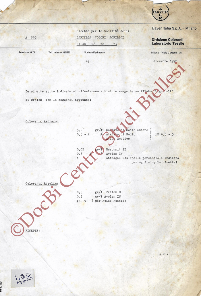 Tintura sobre hilados mixtos de lana y Cuprama segùn el procedimiento de un solo baño àcido para media lana