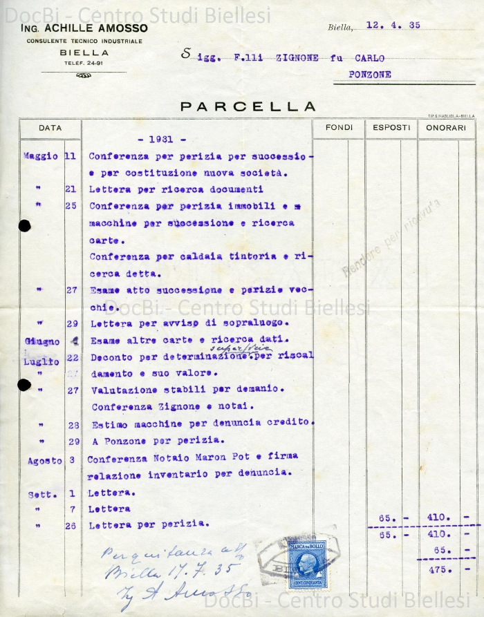 Carteggio e documenti del Genio Civile e del Min. LL. PP. relativi alle derivazioni dal Ponzone e dallo Scoldo