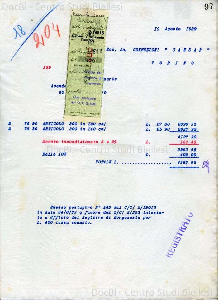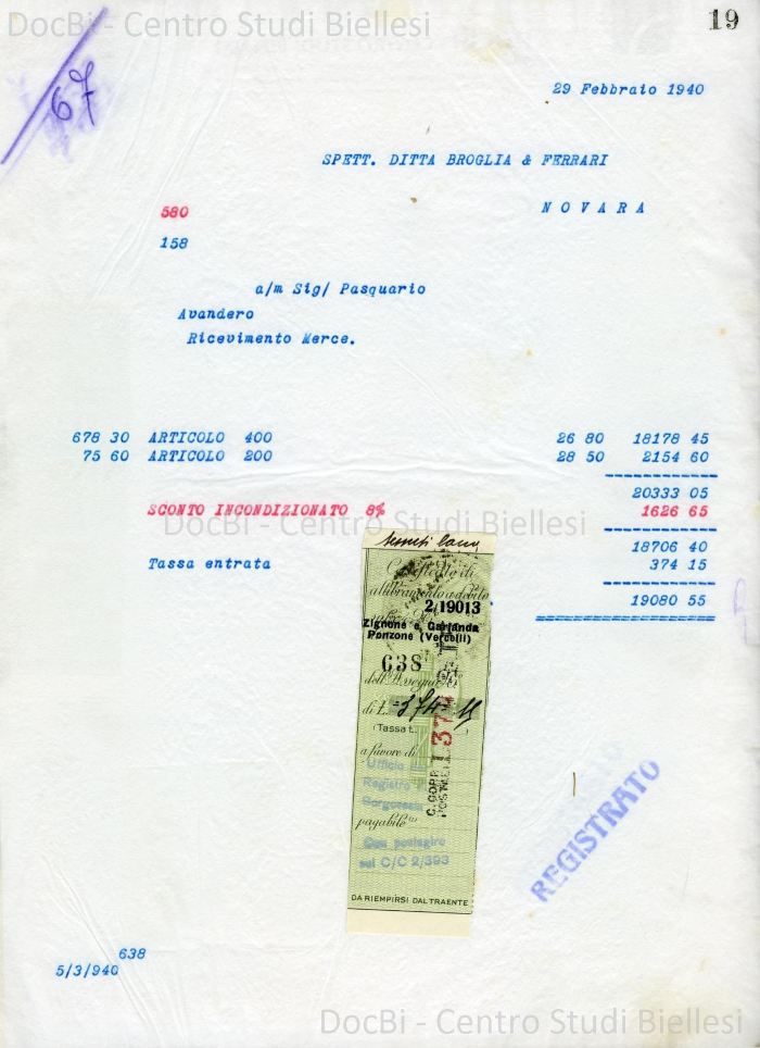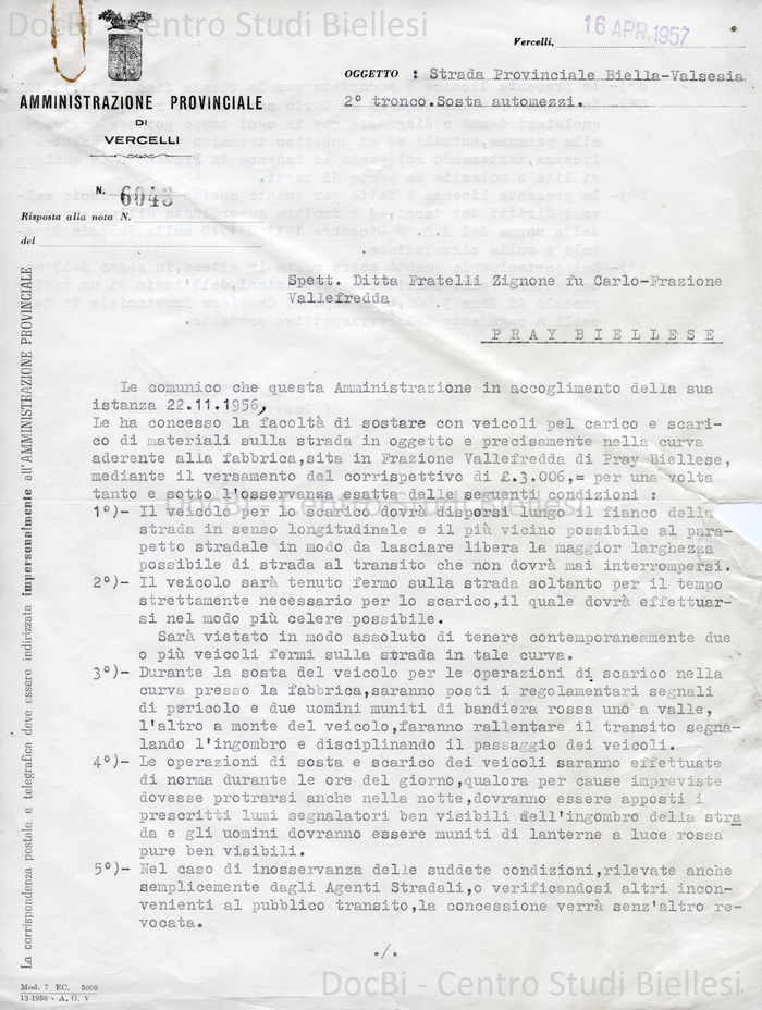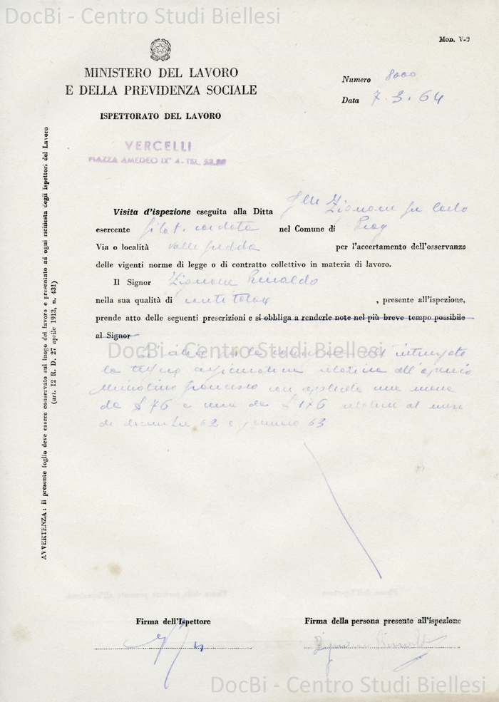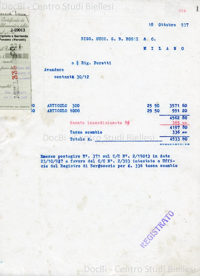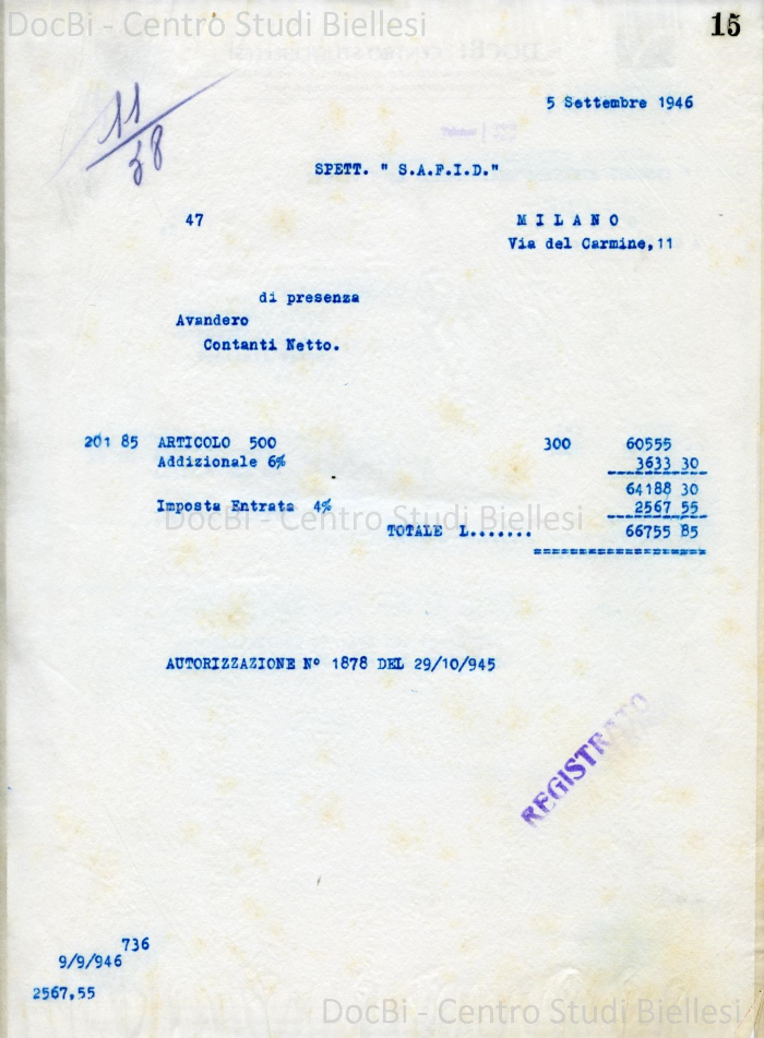 Domanda all’Intendenza di Finanza di Novara per la riduzione della tassa sull’impianto dei meccanismi di forza motrice 1911