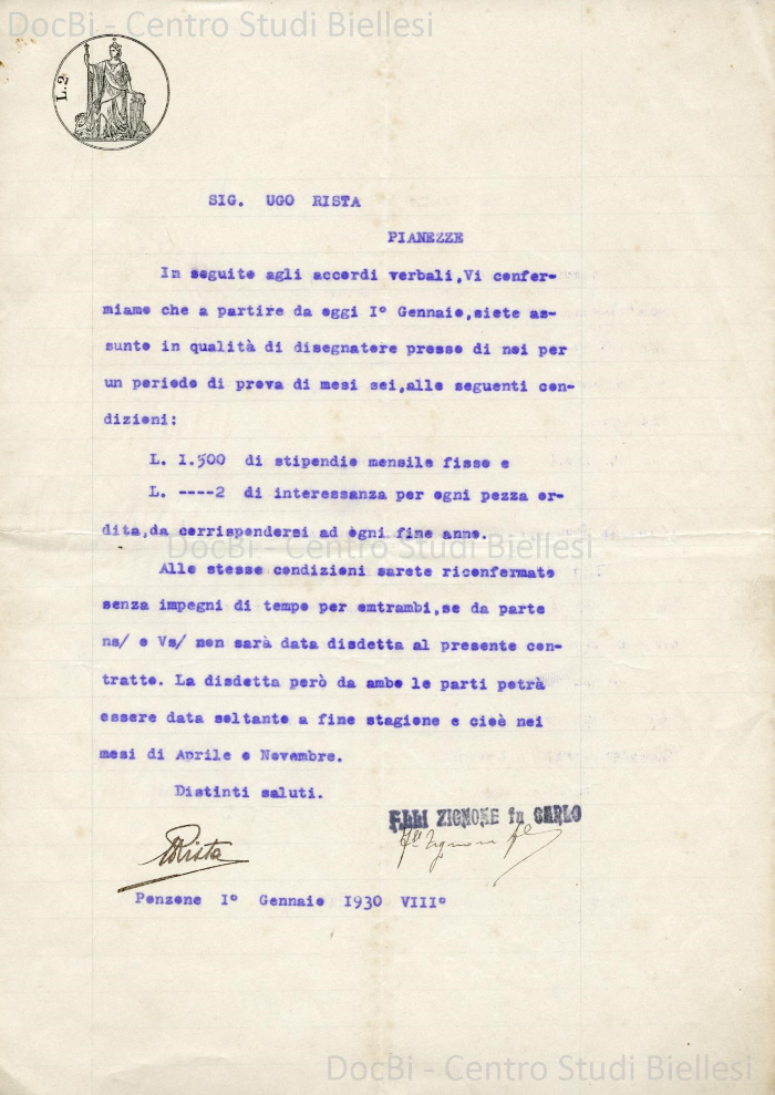 Convenzione privata tra la ditta "Zignone & Trabaldo" e Marrone Pietro fu Lorenzo e Marrone Lorenzo di Pietro, padre e figlio 1884
