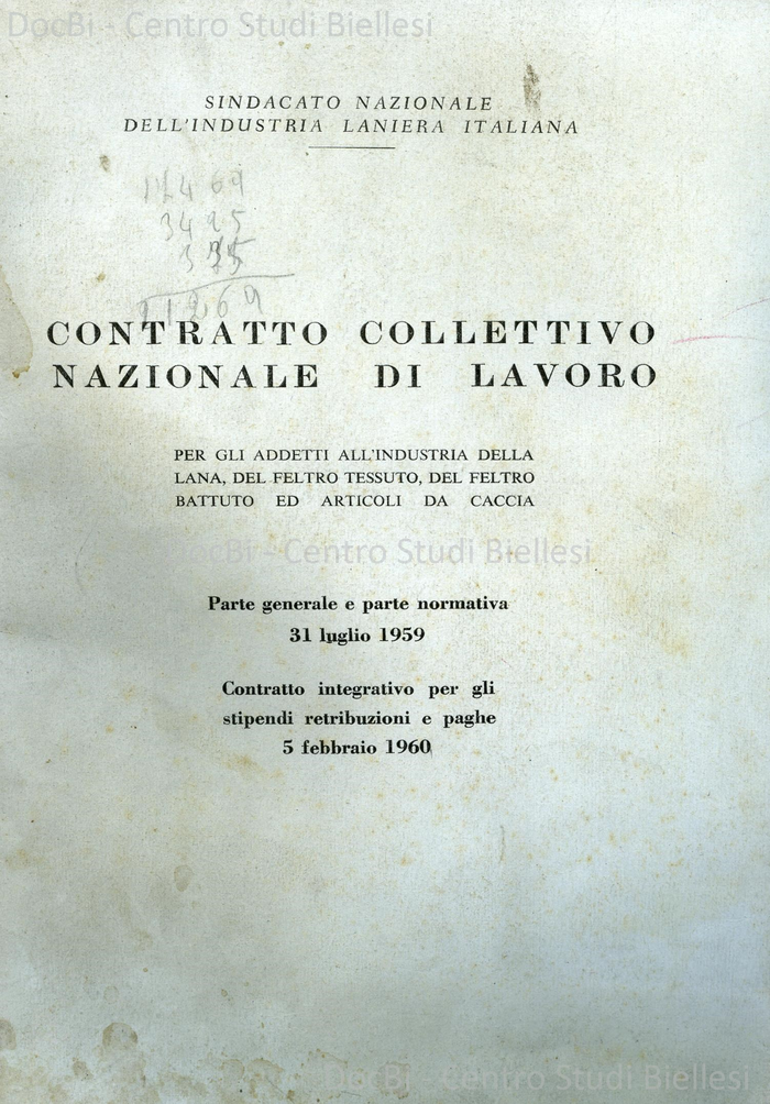 Contratto collettivo nazionale di lavoro per gli addetti all'industria della lana, del feltro tessuto, del feltro battuto ed articoli da caccia