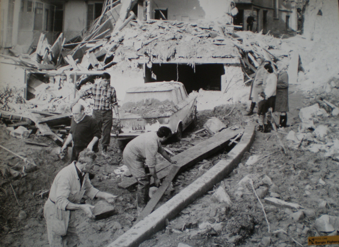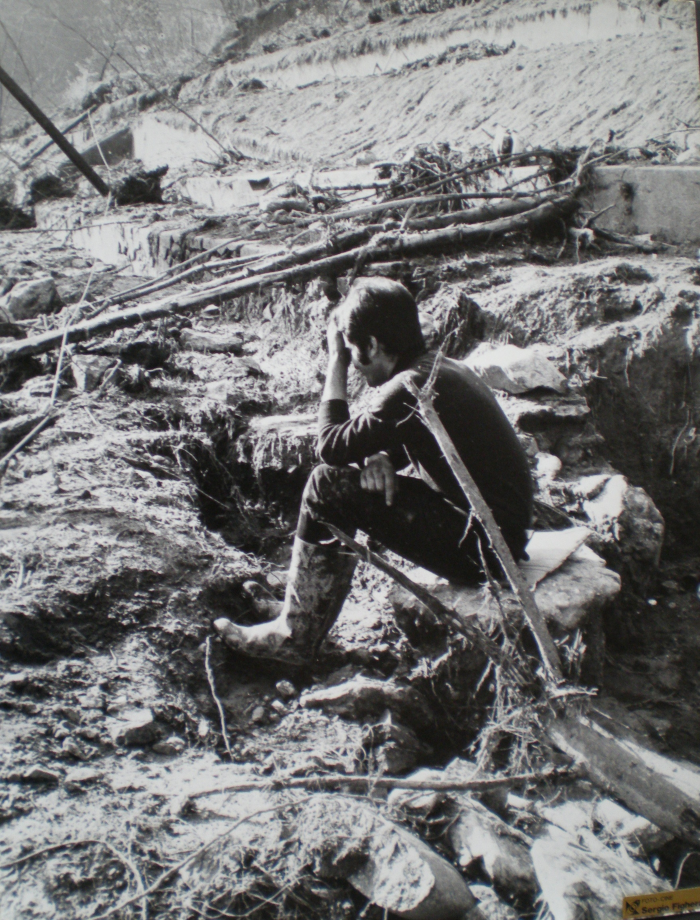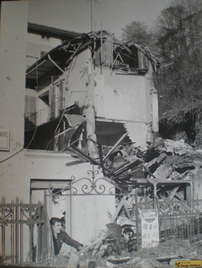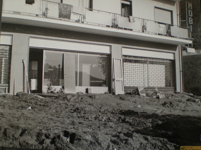 Muro di cinta del lanificio botto albino – fango e acqua e detriti sulla provinciale che fiancheggia il lanificio botto albino di Campore