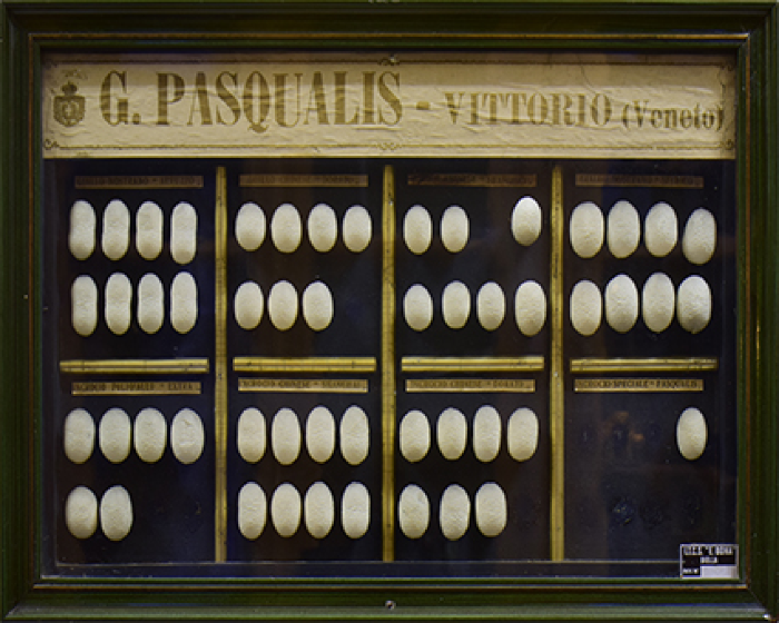Plancia didattica sul ciclo produttivo della seta (dal baco alla materia prima) della ditta Raimondo Buratti