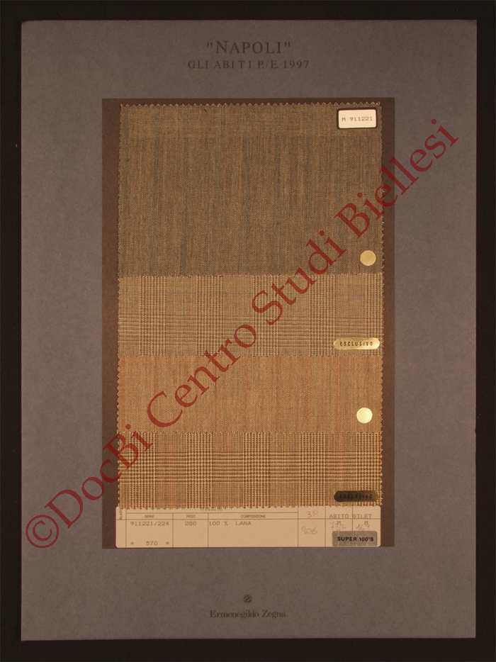 Raccolta di cartelle campioni di tessuti per pantaloni, abiti e gilet collezione autunno/inverno 1994/1995
