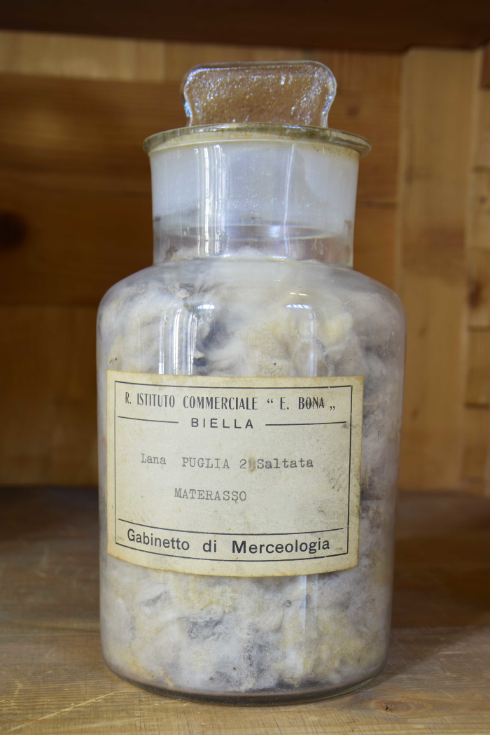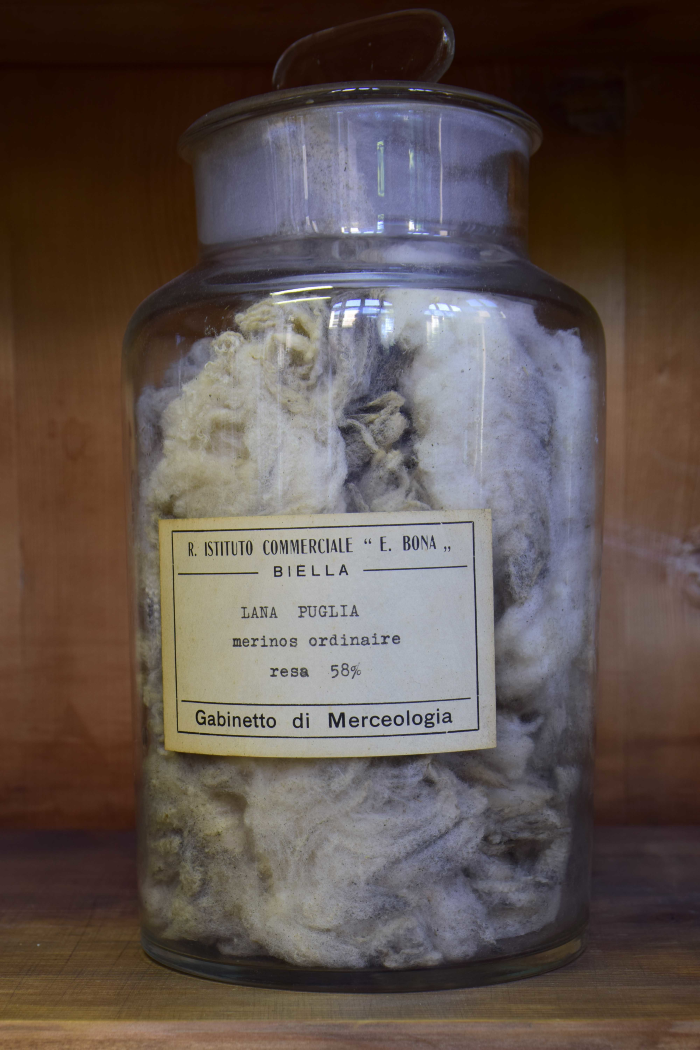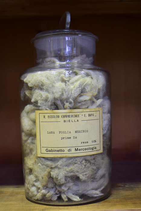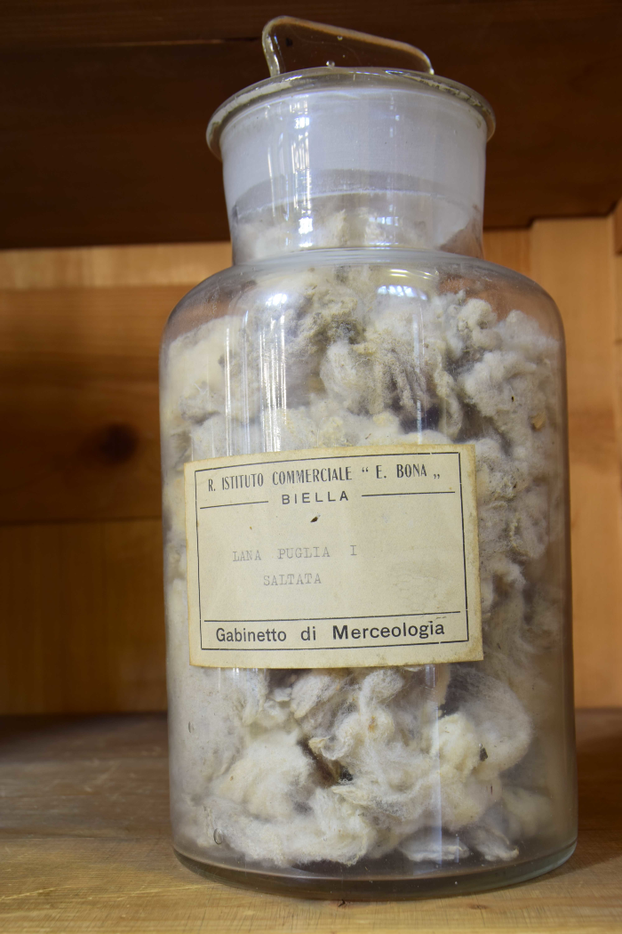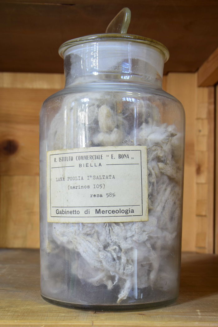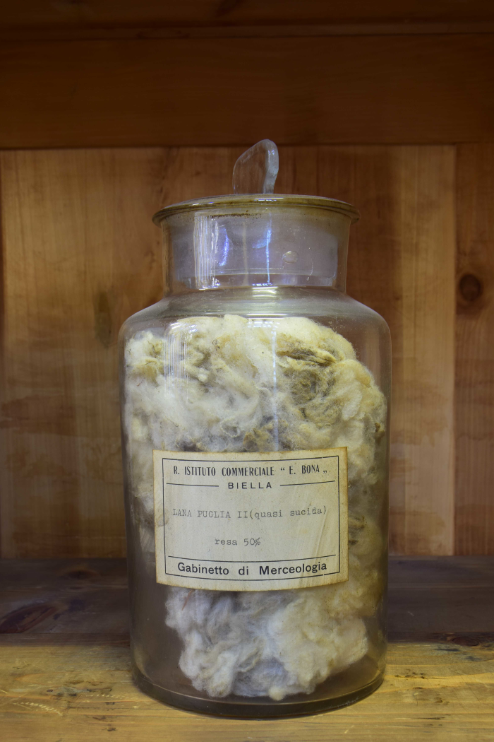 Campione di "Lana Puglia I saltata - Resa da sucida in lavato 45% - Resa da saltata in lavato 56% - Resa in pettinato 40%"