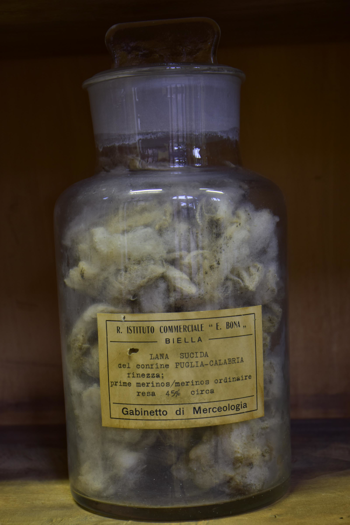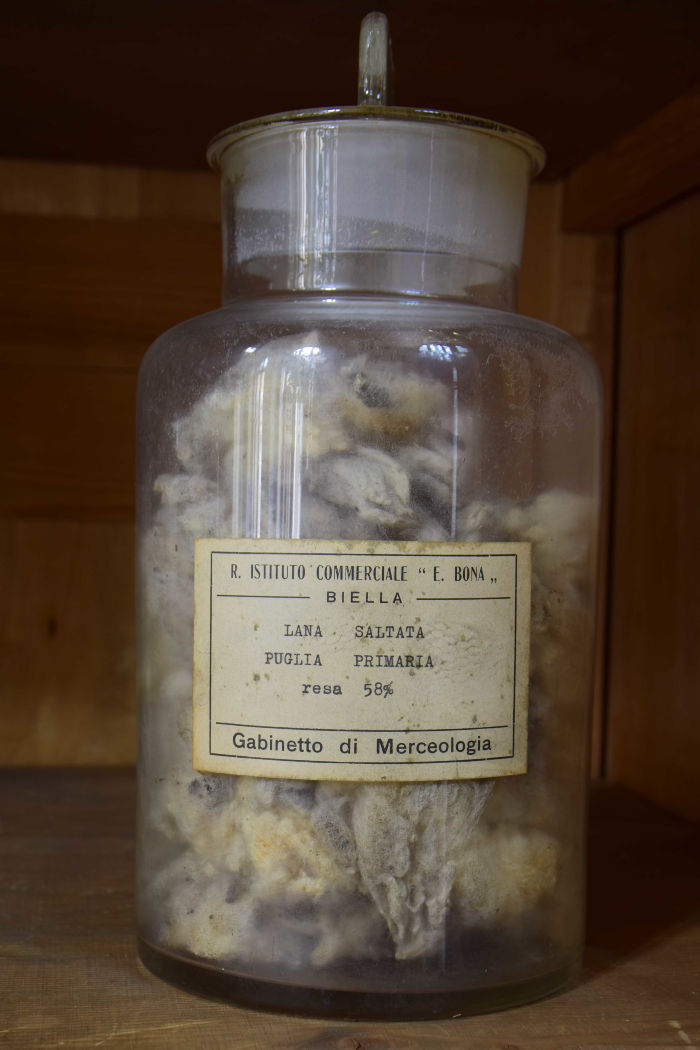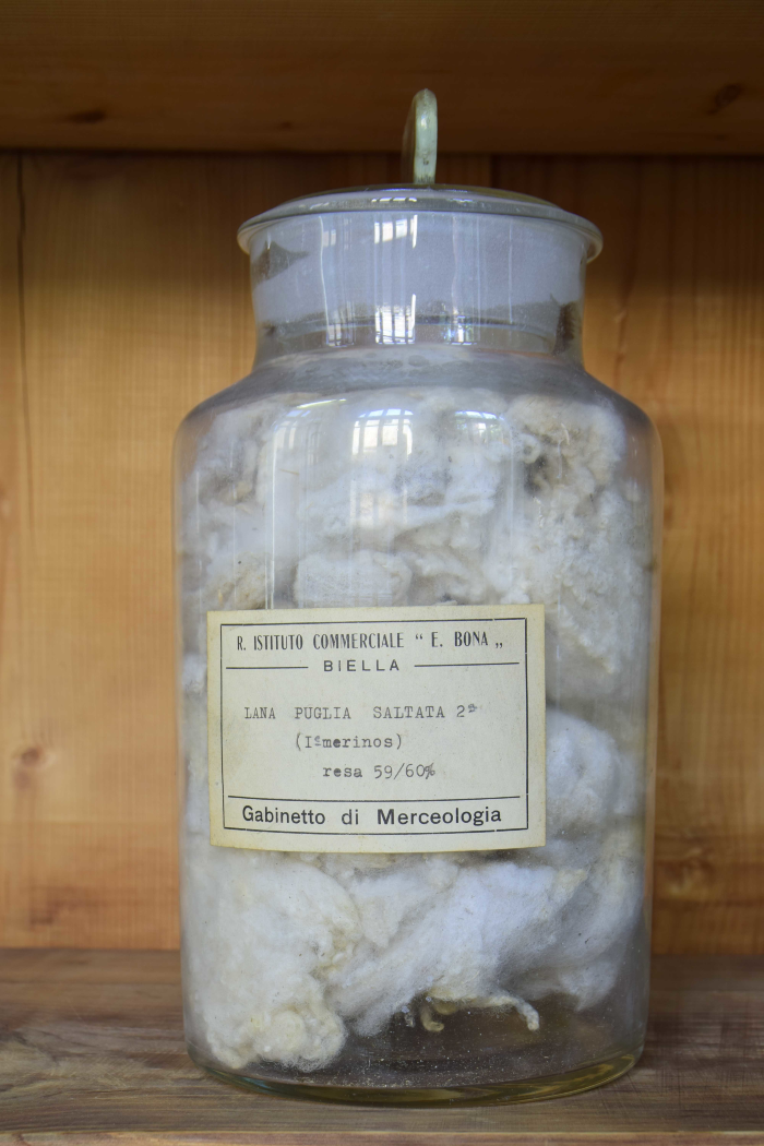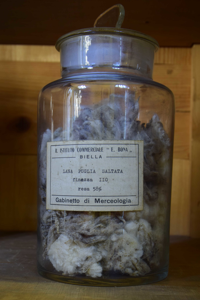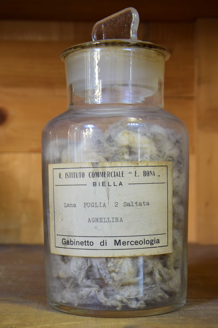 Campione di "Lana Puglia I saltata - Resa da sucida in lavato 45% - Resa da saltata in lavato 56% - Resa in pettinato 40%"